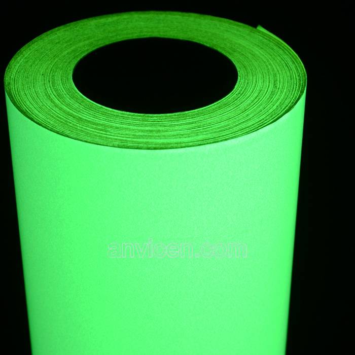 Photoluminescent Film also named Glow in the Dark Film, is a self-adhesive vinyl made up of PVC layer and a Photoluminescent pigment coating. The backside of the luminous film is a specially formulated pressure-sensitive adhesive layer that provides permanent adhesion and protected with siliconized release paper. The glow in the dark film is a unique self-powered film that accumulates light energy in the daytime and emits the glow in the dark.